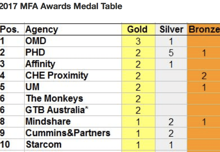 AFFINITY | Highest ranked Independent Media Agency at MFA Awards